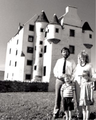 Ian and Sue Brash with their children (Vicki and Greig) outside the newly restored castle